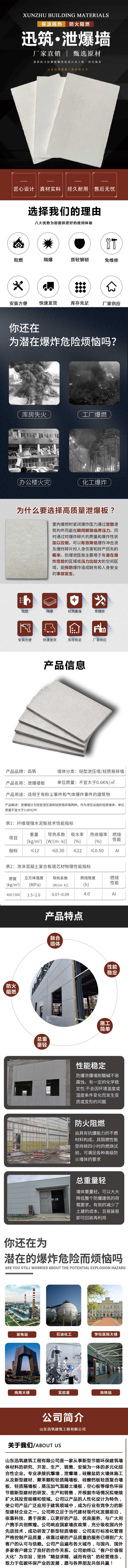 主营:抗爆墙、泄爆墙、防火墙、ALC墙板和轻质隔墙板等